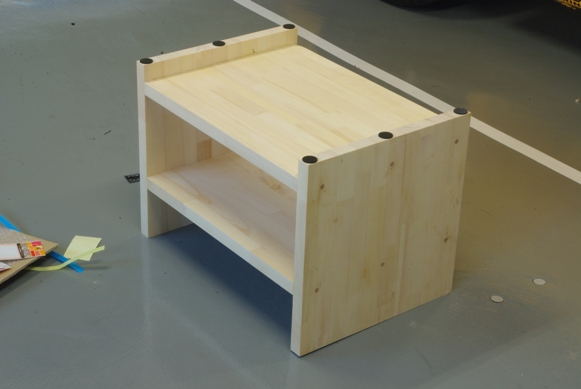 製作中に気付いたことですが、木材木口面の直角の精度が高いので、側板と棚板の直角がかなり正確になりました。