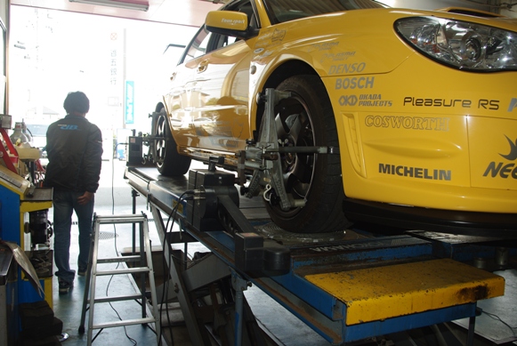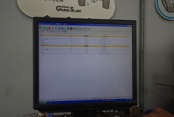 そしてフロントのアライメントを、リヤの数値を見ながら調整していきます。