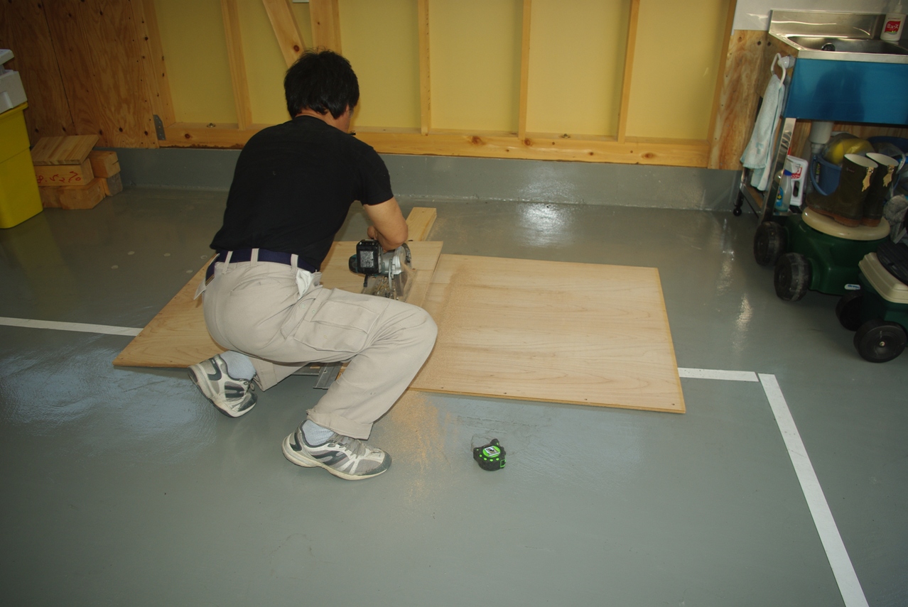 コンパネを計ったサイズに切断しています。