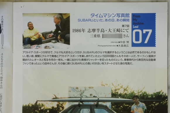 確か2010年の3月か4月ごろに、冊子内の「タイムマシン写真館」というコーナーに、若い頃撮った1枚の写真(SUBARU車両と自身のツーショット)を投稿したところ、取材の申し入れがありました。