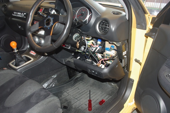 手探りでもたぶんこの作業は出来るのですが、確実に作業するために、今回はステアリングコラムが出ているダシュボードの下側のパネルを取り外すことにしました。