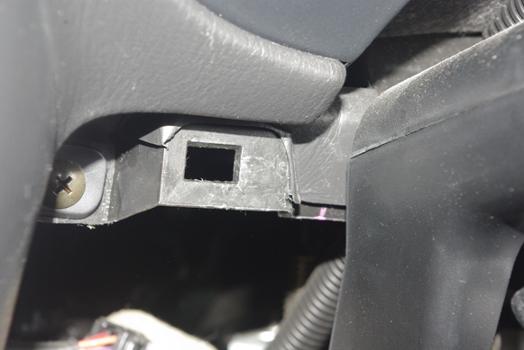 3つめのクリップ穴は、ステアリングコラムの左脇です。
