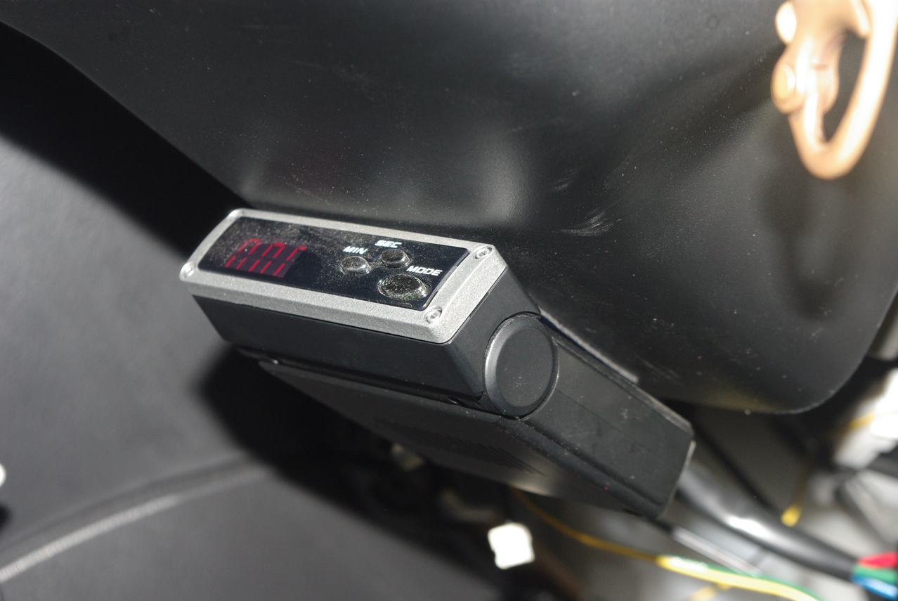 確認のためすぐにもう一度エンジンを掛けると、ステアリングコラムの下側にマジックテープで固定してある、ULTRA FULL AUTO TIMER No.4755 の電源が入りません。