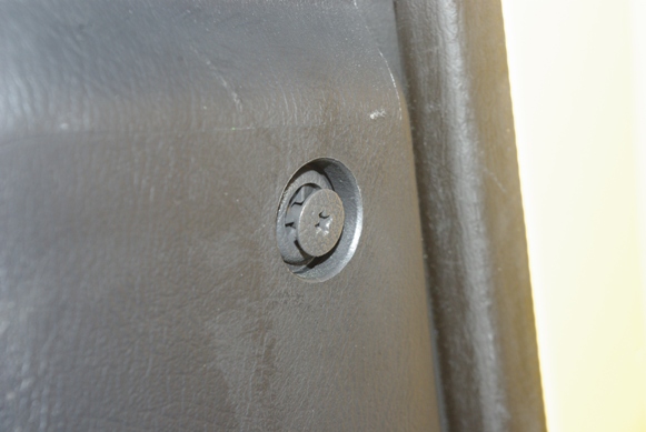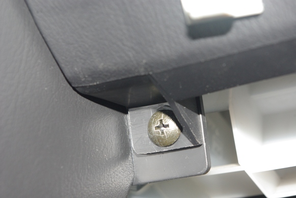 左のクリップはダッシュボードパネルの右端にあり、中のネジ部をドライバーで少し緩めると、2枚目の画像のようにネジ部がひょこっと頭を出しますので、その状態のまま外側のリングの部分に爪などを掛けて引っ張れば、簡単に抜き取ることが出来ます。