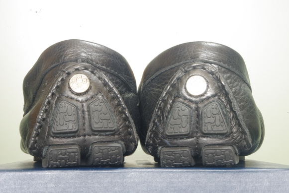 しかしヒールの形は全然違っていて、所謂ドライビングシューズによく見られる、かかとの上までソールが跳ね上がった形状です。