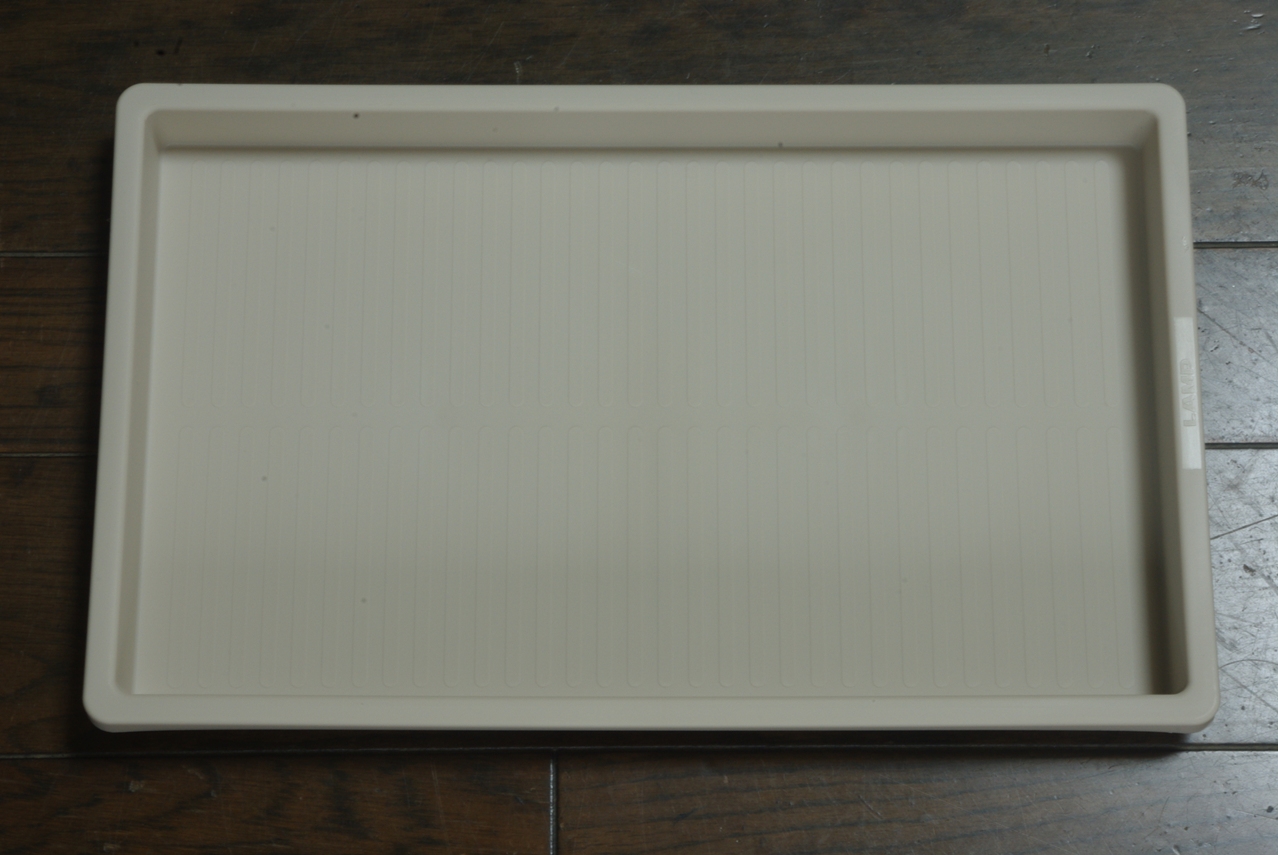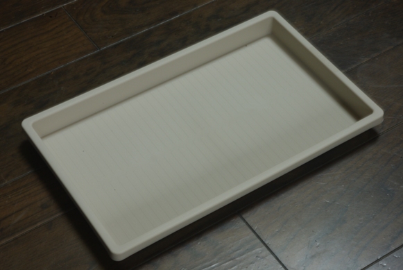 よくビジネスホテルの部屋のクローゼットの下に置いてあるシューズトレーです。