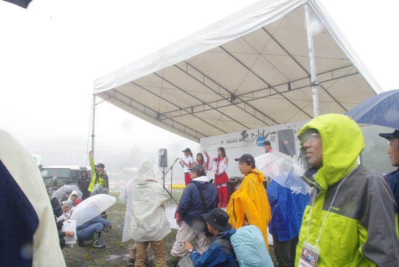 セレモニアルスタートの人だかりも、この雨の影響なのか実に少ない感じがしました。