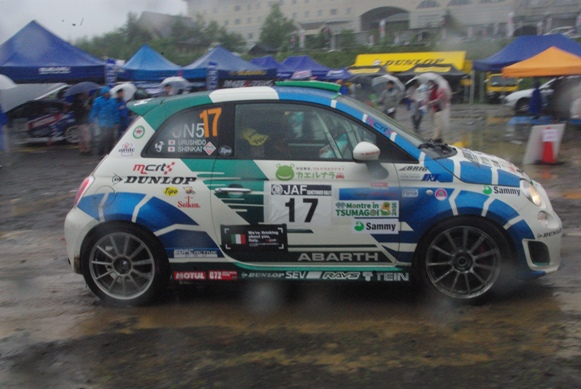 JN-5 No.17 眞貝 知志 選手/漆戸 あゆみ 選手のABARTH500RallyR3T DL、「ムゼオ チンクエチェント レーシングチーム」です。