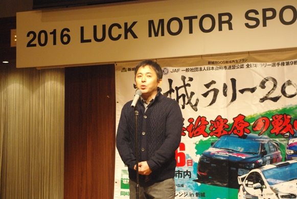 新城ラリー大会組織委員長でLUCK社長の勝田照夫氏より、パーティー開催のごあいさつです。