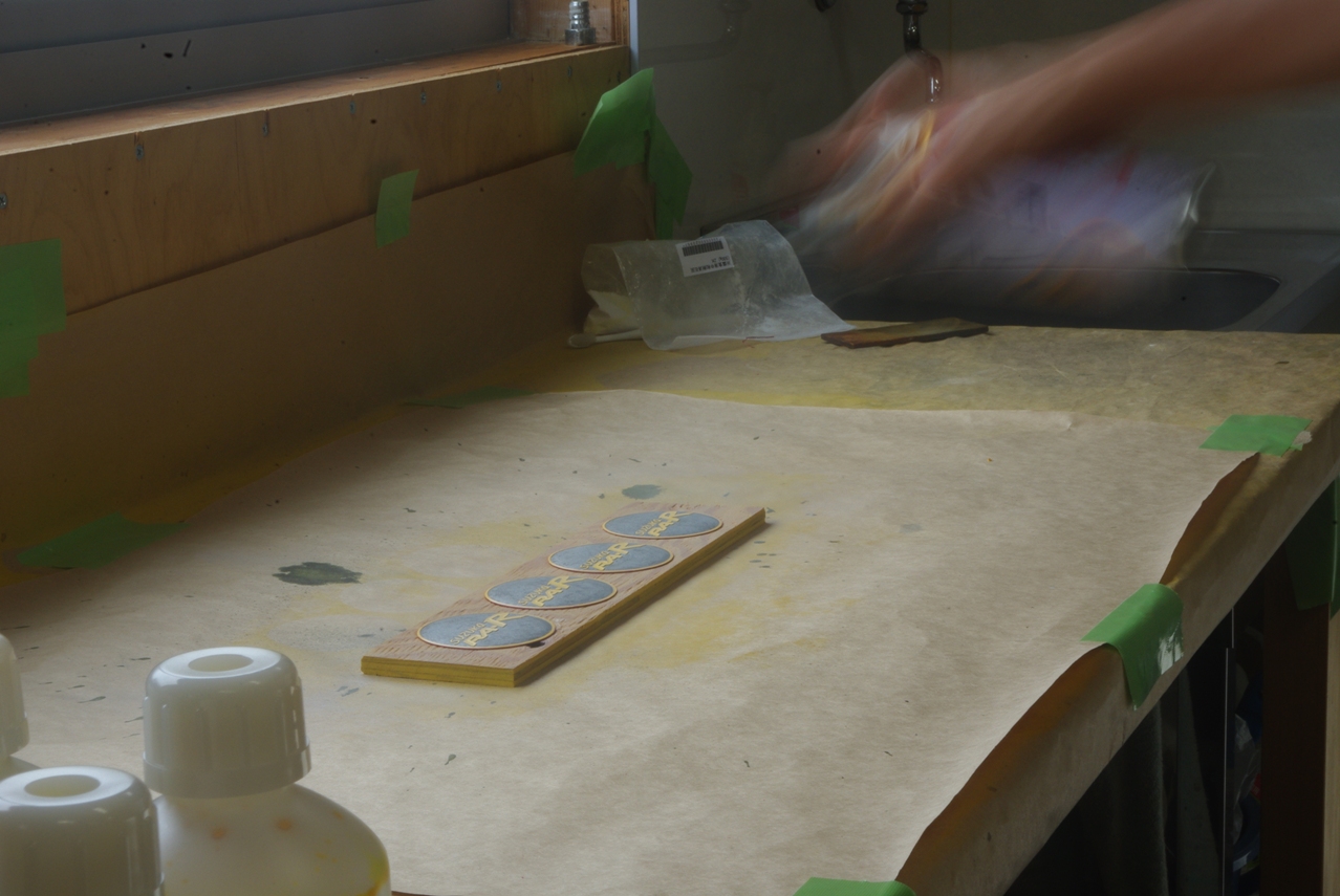 ちょっと欲張って4回目の背景黄色重ね塗り塗装を行いました。