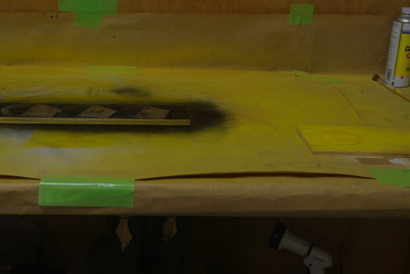 背景用の黄色の塗装開始(Aラインの黒文字と同時に進行)