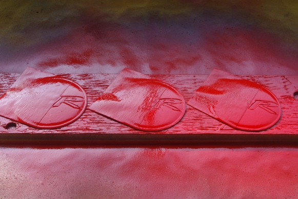 このシートと別にもうひとつマスキングを加えて、「RA-」の黒と「R」の赤を塗り分けます。