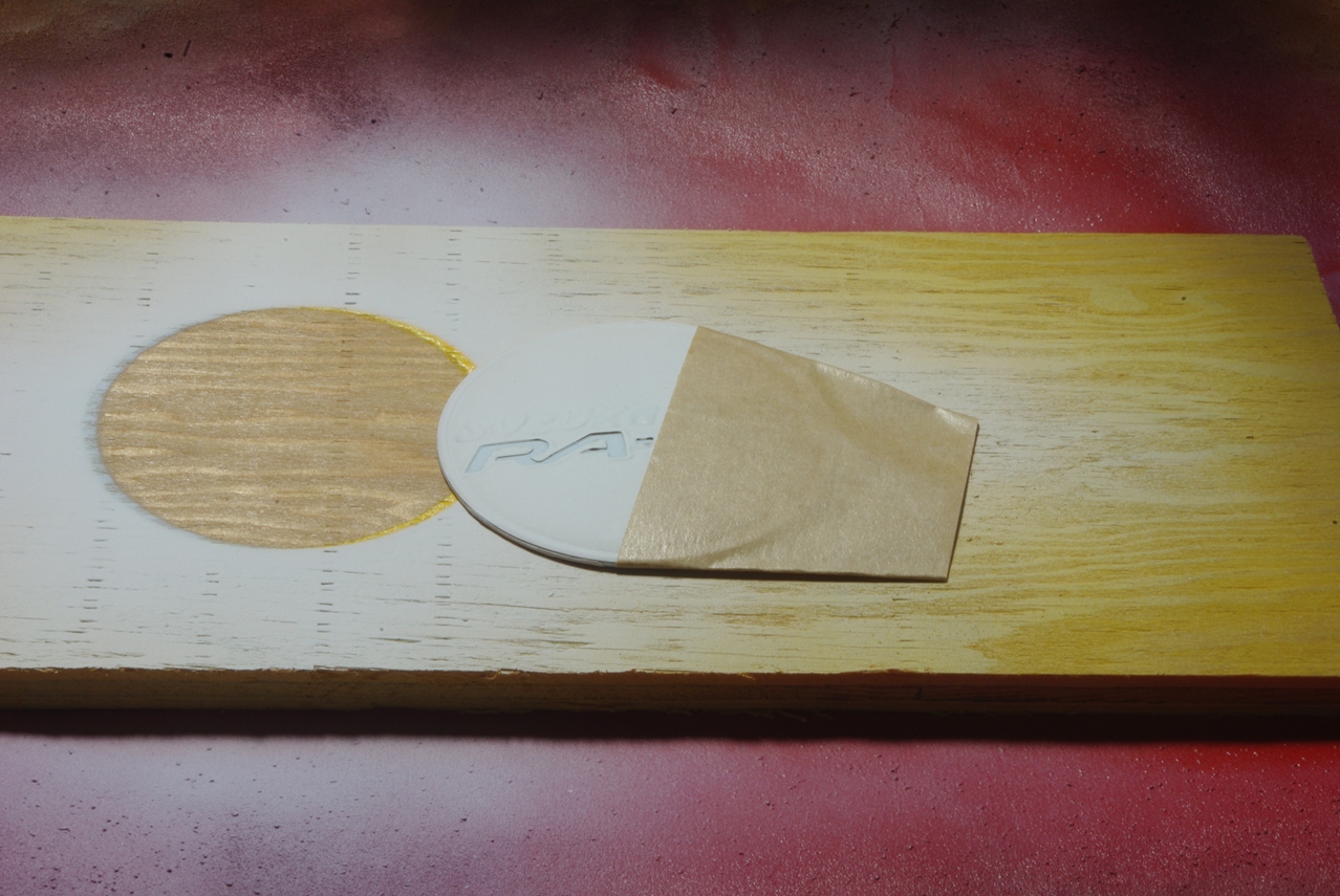 塗装マスキングパターン2 にさらに重ねて荷造りテープで赤文字塗装部分を目隠ししました。