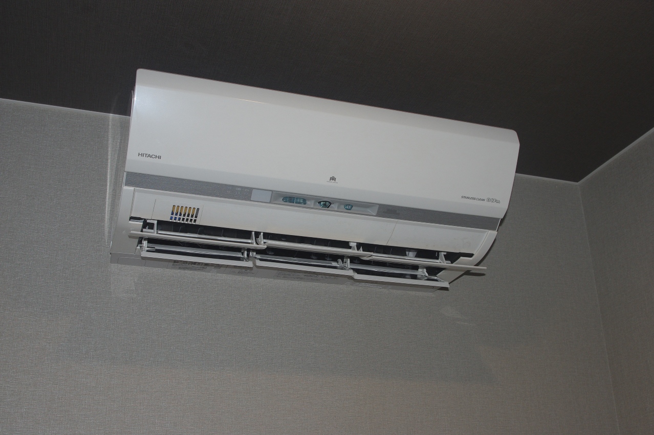 この小さい部屋には不釣り合いと云えるほど、かなり大型のエアコンです。