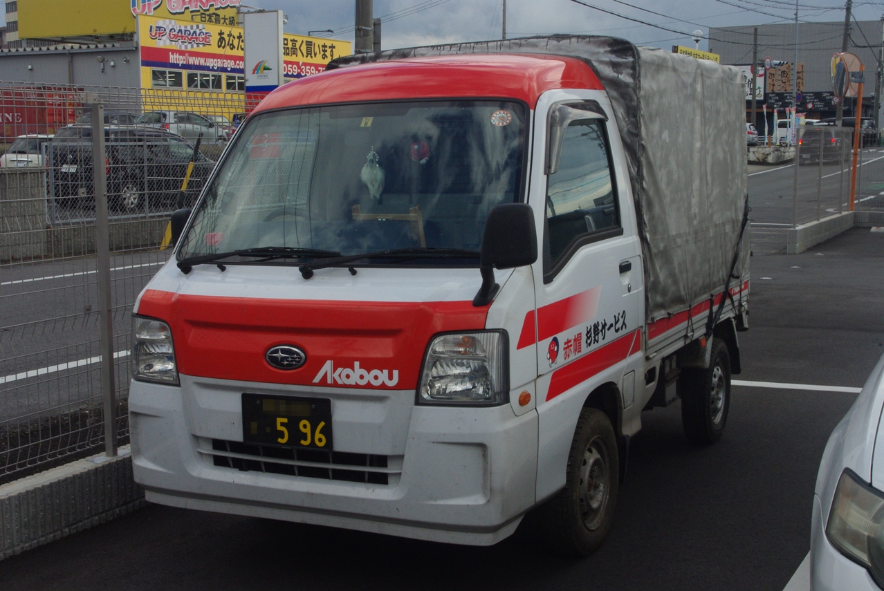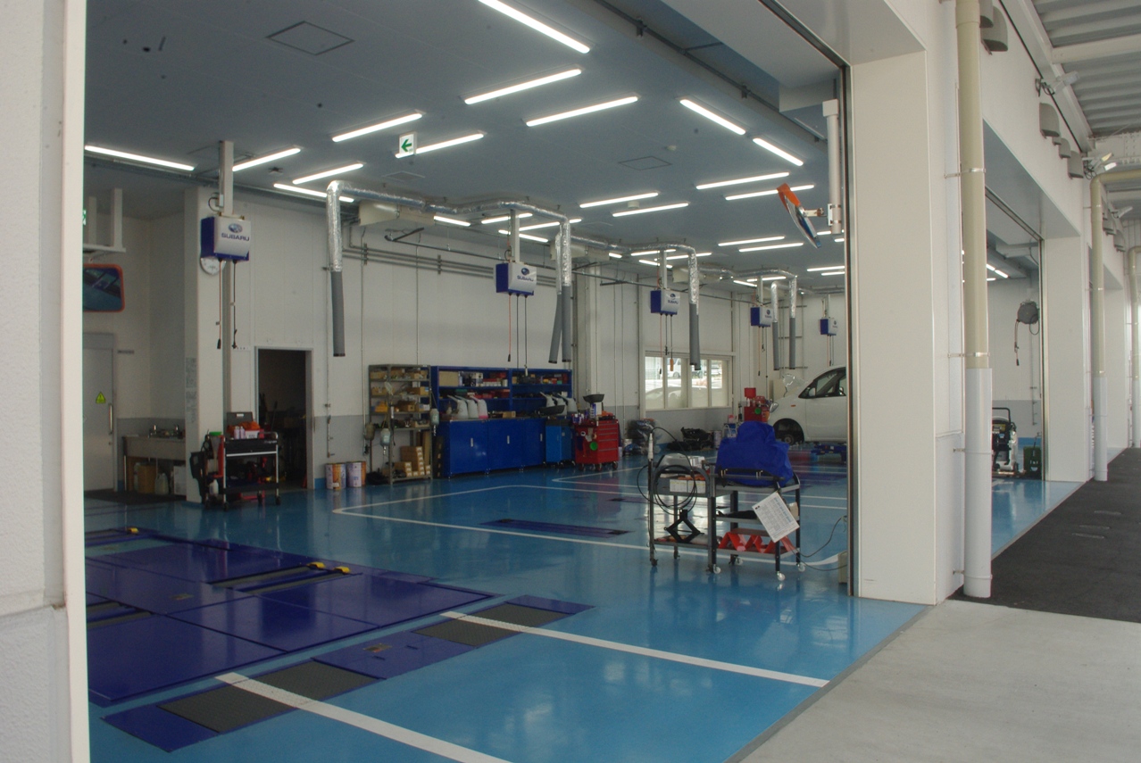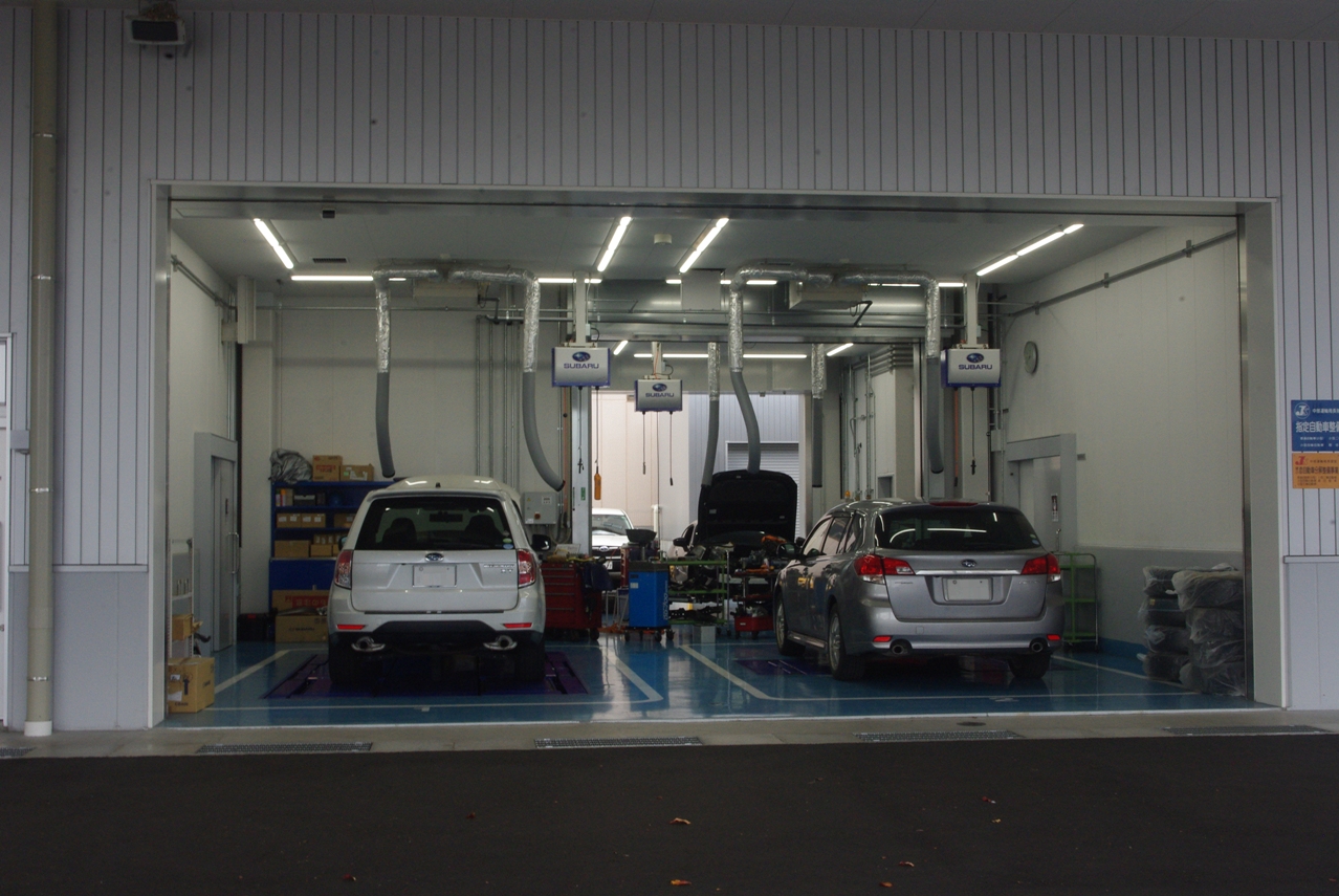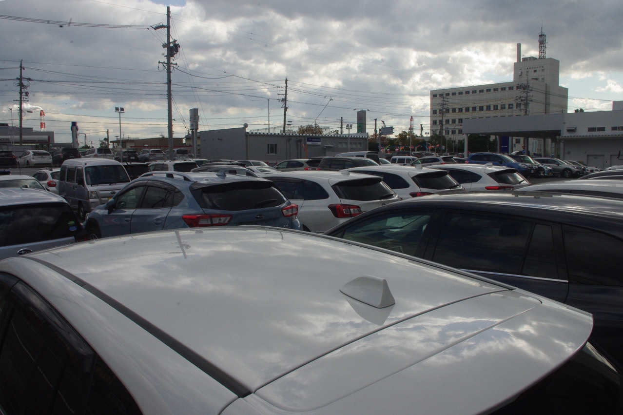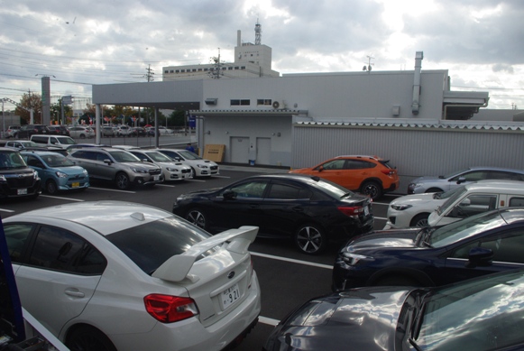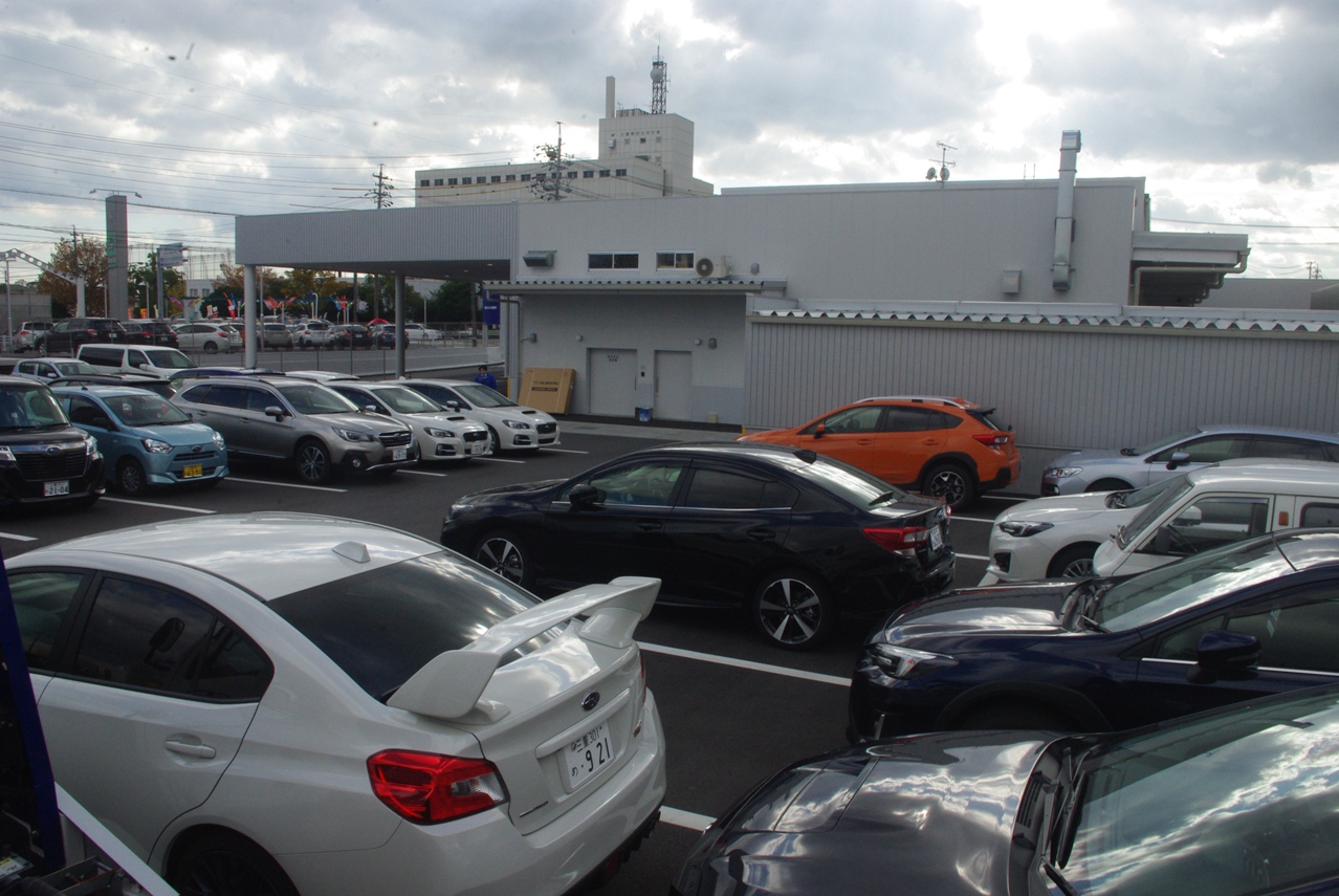 画像は、前回来店したときはまだ建設中だった、スバルユーズドカーの屋外展示場です。