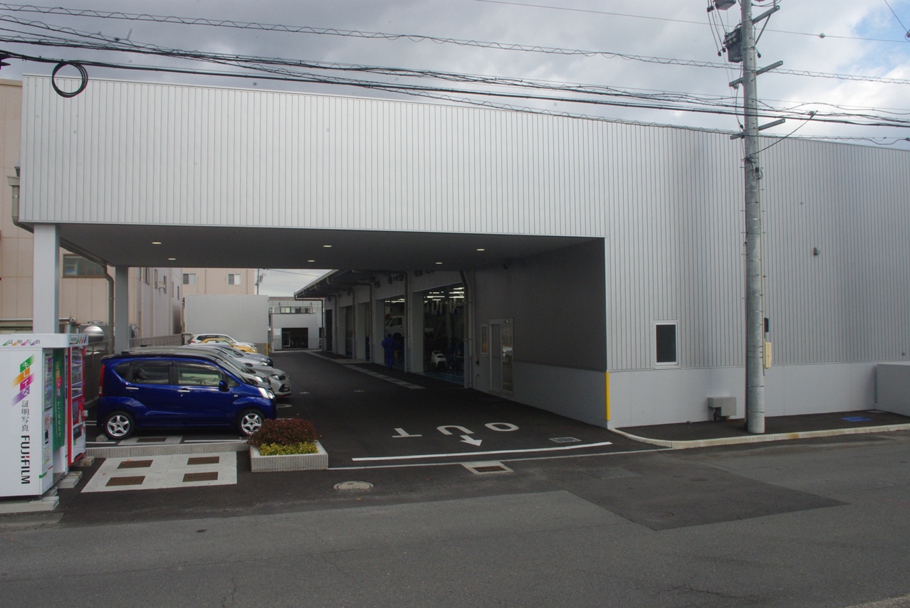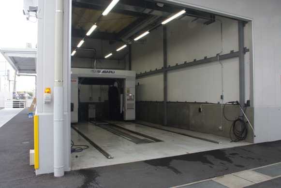 そしてその車庫の向かい側、シヨールームの建物裏手の北西の角に、この洗車場がありました。