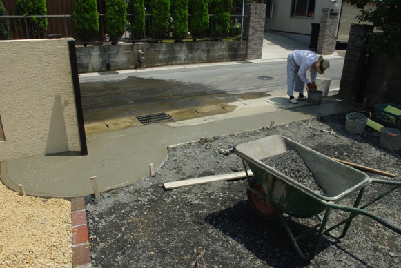 敷地入り口の基礎工事が、一昨日にほぼ終了しました。