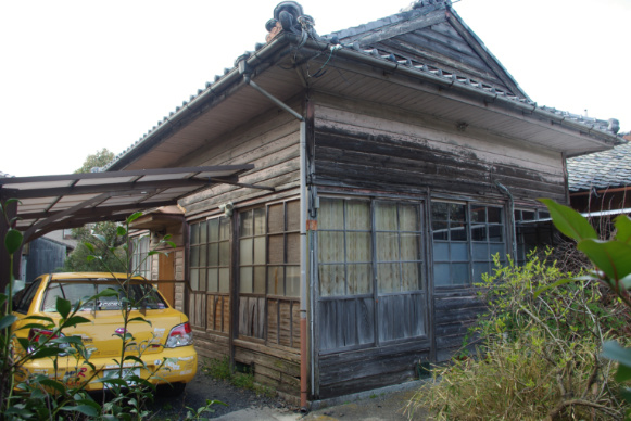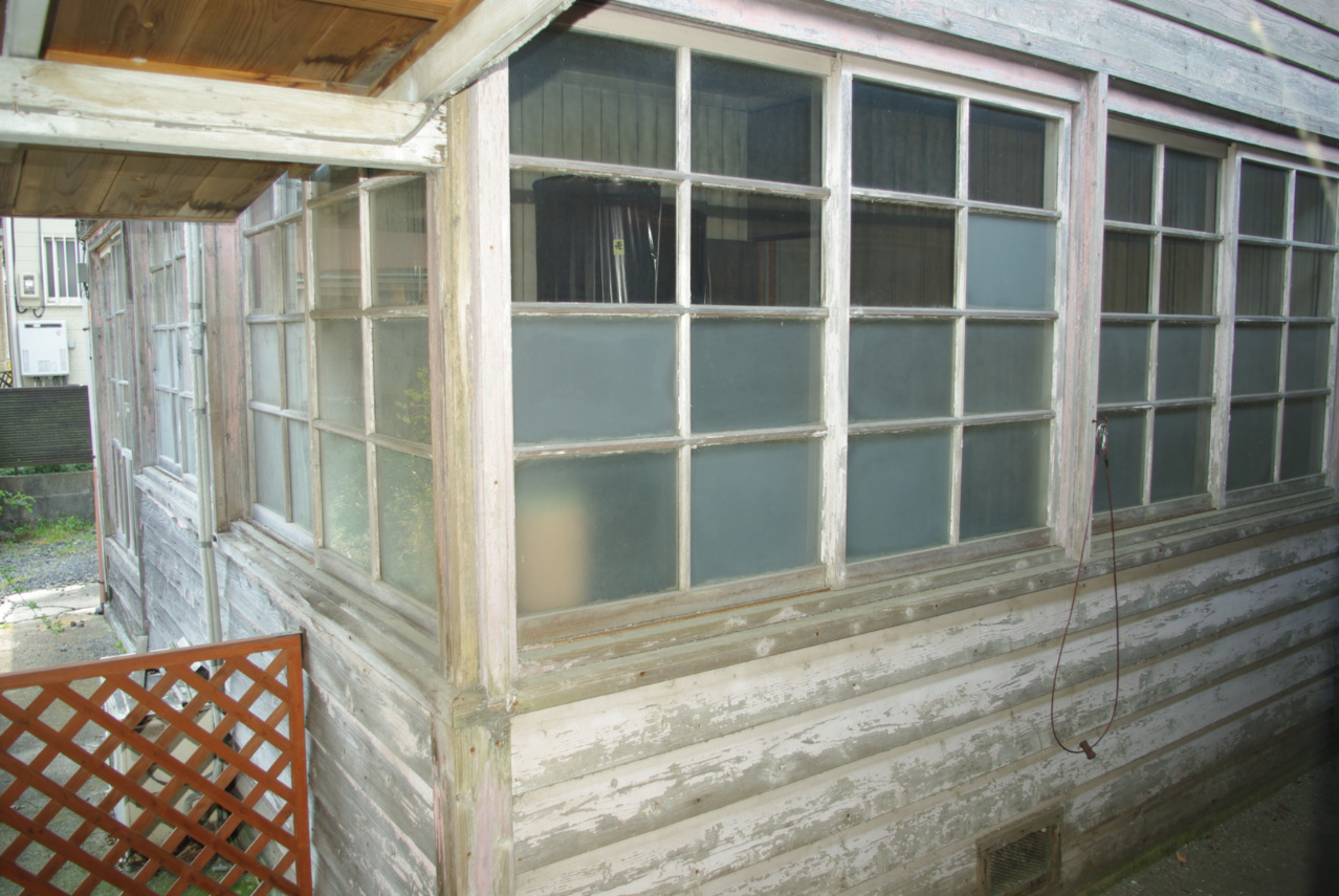 因みにこの洒落た門は、右の画像にある取り壊した家屋の窓ガラスが、今日ではアンティークガラスとして結構価値があるとのことで、甥の自宅新築を手掛けた住宅建築会社のデザイナーの親族の方に全て差し上げることとの見返りとして、後日この門のデザインと製作をサービスしていただくことになりました。