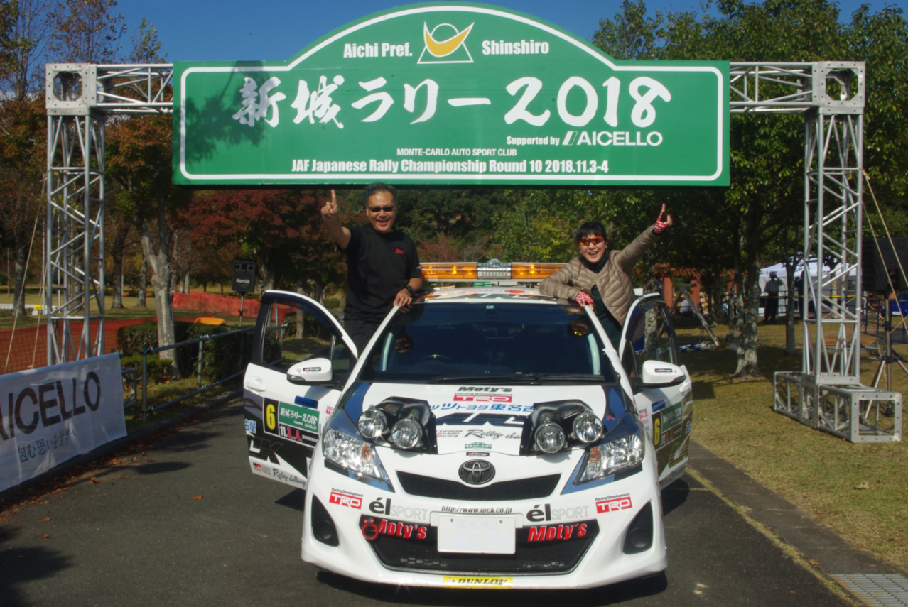 このエリアの一番奥は、武道館(特設VIP・メディア待機所)の渡り廊下に面していて、そこにはこの新城ラリーの幔幕が掲げてありました。