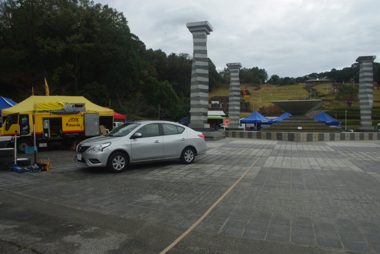 東駐車場前のヘッドクォーターまで行く途中、今年は全日本のサービスパークになったこの噴水広場を通りますので、その雰囲気だけ写真に収めました。
