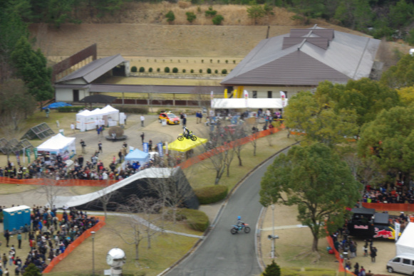 再びSSコースに目をやると、丁度これからスーパーモトクロスのジャンプパフォーマンスが始まるところでした。
