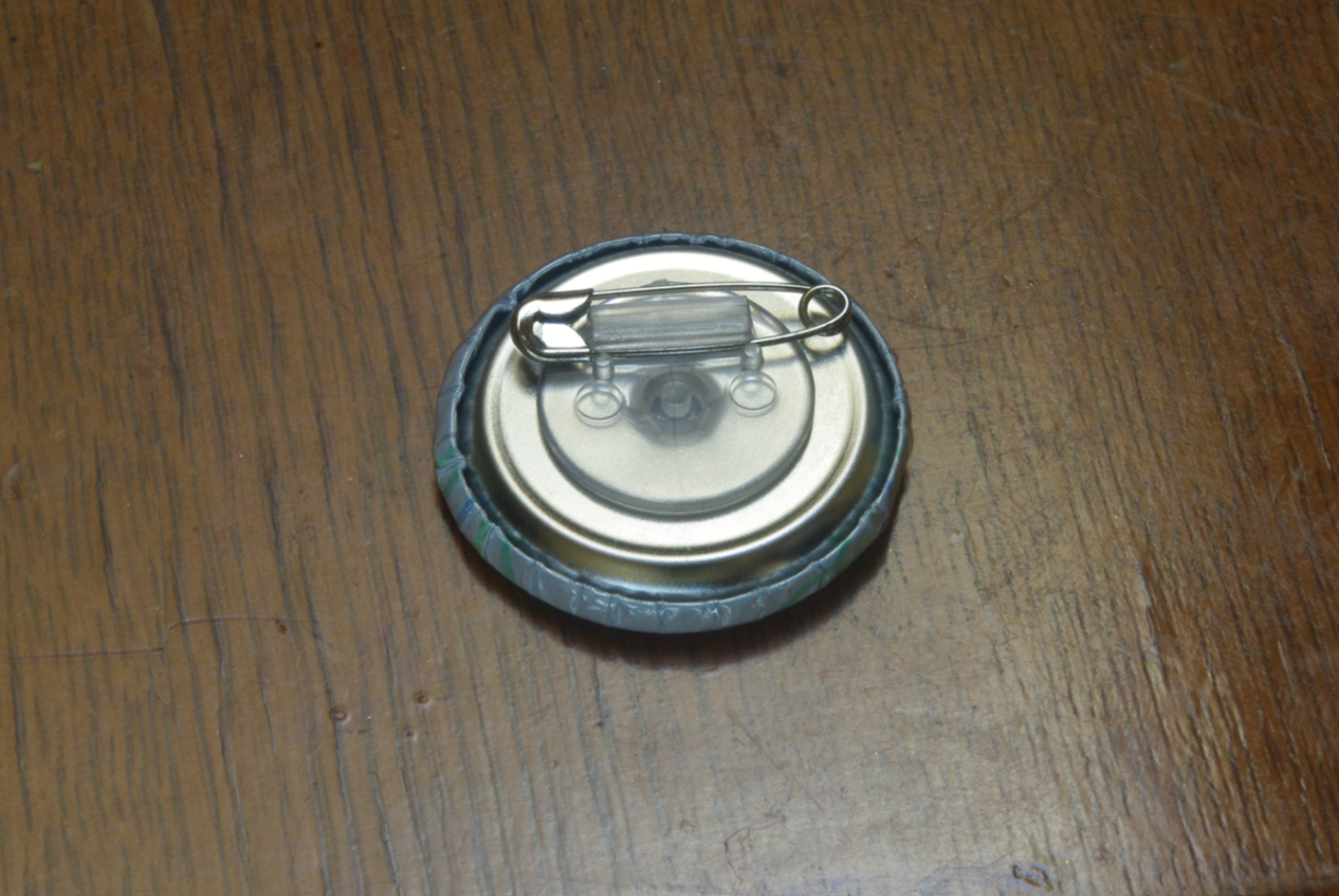 上下の位置だけ注意して、安全ピンパーツの突起部をバッジ裏の穴に押し込んで固定します。