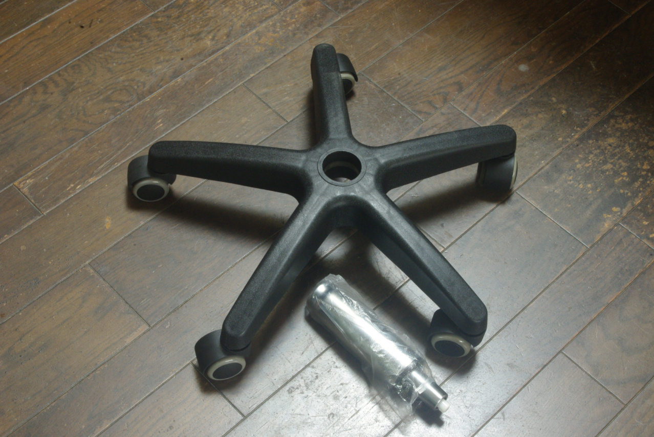 一昨日シートレールを取り外してから、俄然製作意欲にも火がつきまして、ネットであらゆるオフィスチェアをチェックしたところ、とうとう意中の製品を見つけまして、早速本日の未明に注文しましたら、夕方にはこうして到着しました。