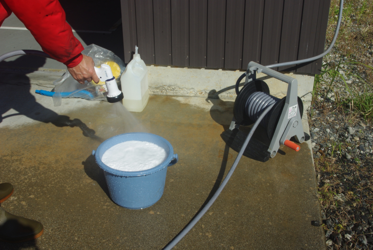 取りあえず洗剤をバケツに入れて、足回り用の洗浄液を作ります。