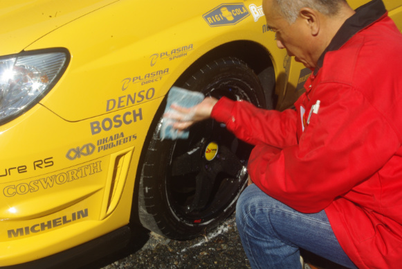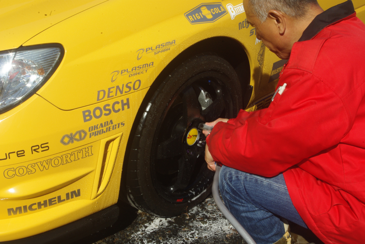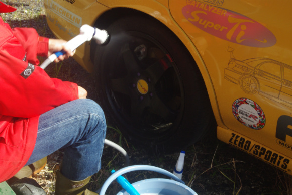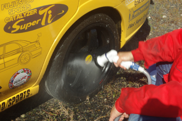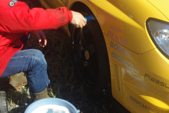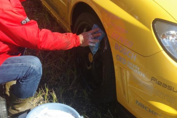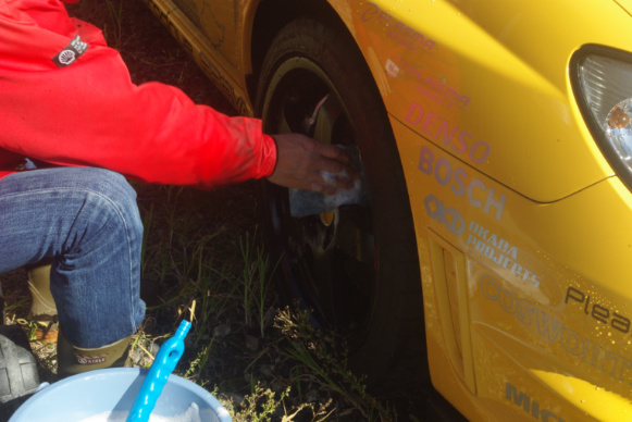 そしてついでに4本のタイヤすべて、移動前に下側になって地面に隠れていたショルダー部が、真上に来ますのでそこも綺麗にしています。