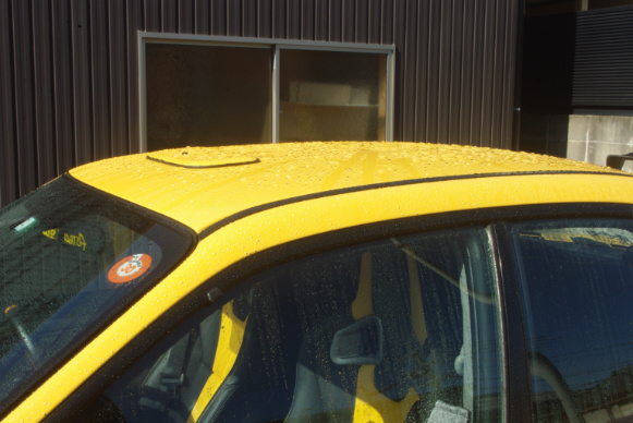 エンジンフードもルーフ同様に、まだ充分ゼロウォーターの効果は残っているようです。