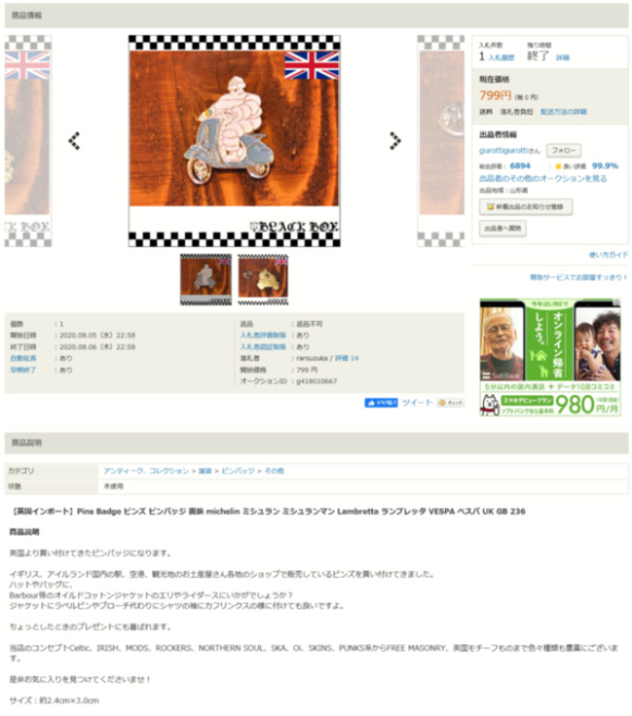 上記の英国製ピンズを落札購入しましてから、俄然ヤフオク好いてしまいました。