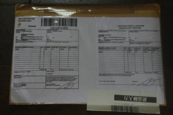 フランスからですから、もっと日にちが掛かるかと思っていましたが以外に早く到着しました。