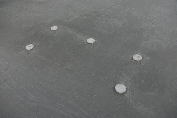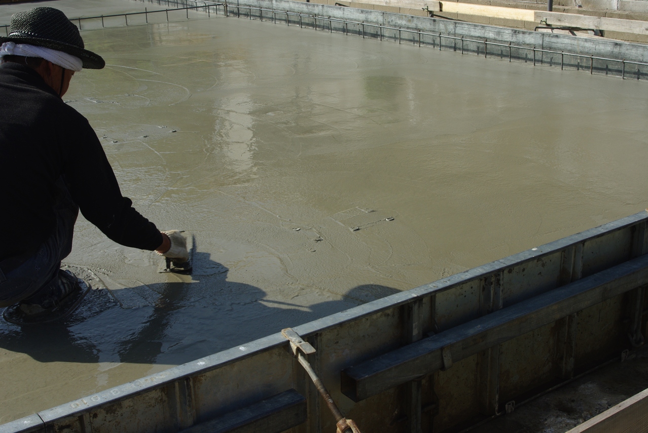 コンクリートの打ち込みが終わって、コテ押さえの作業時には、特にセラミックインサートアンカーの周囲を丁寧に均してくださいました。