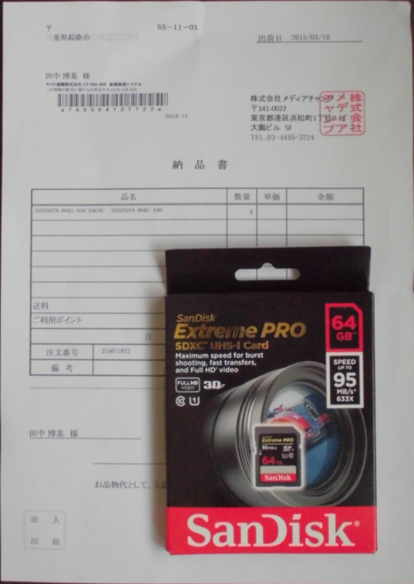 当時としてはかなり大容量のSDXCメモリーカードです。