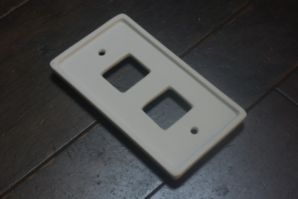 そして次にこれが電気屋さんが用意して下さった、露出型樹脂製スイッチ(コンセント)ボックスです。