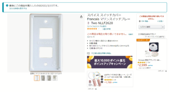 但し現在(2022年12月3日)は購入履歴を検索すると購入履歴自体は保存されていますが、何故か商品画像が購入しました製品とはまったく違うデザインの製品に差し替えられていましたので、スクショは敢えて掲載していません。