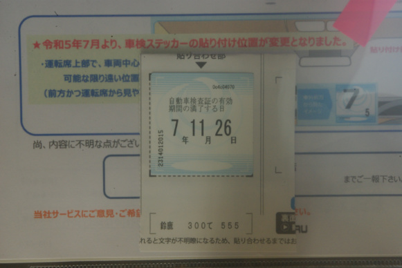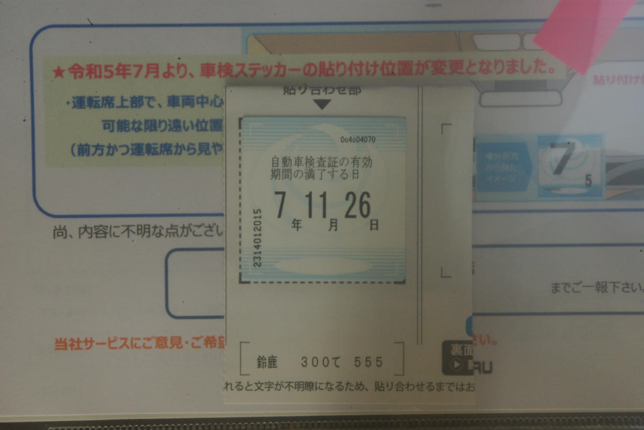 また車検標章はこれまでフロントウインドーの中央上部に貼り付けていましたが、この度から右端(室内から見て)の上部へと変更されました。