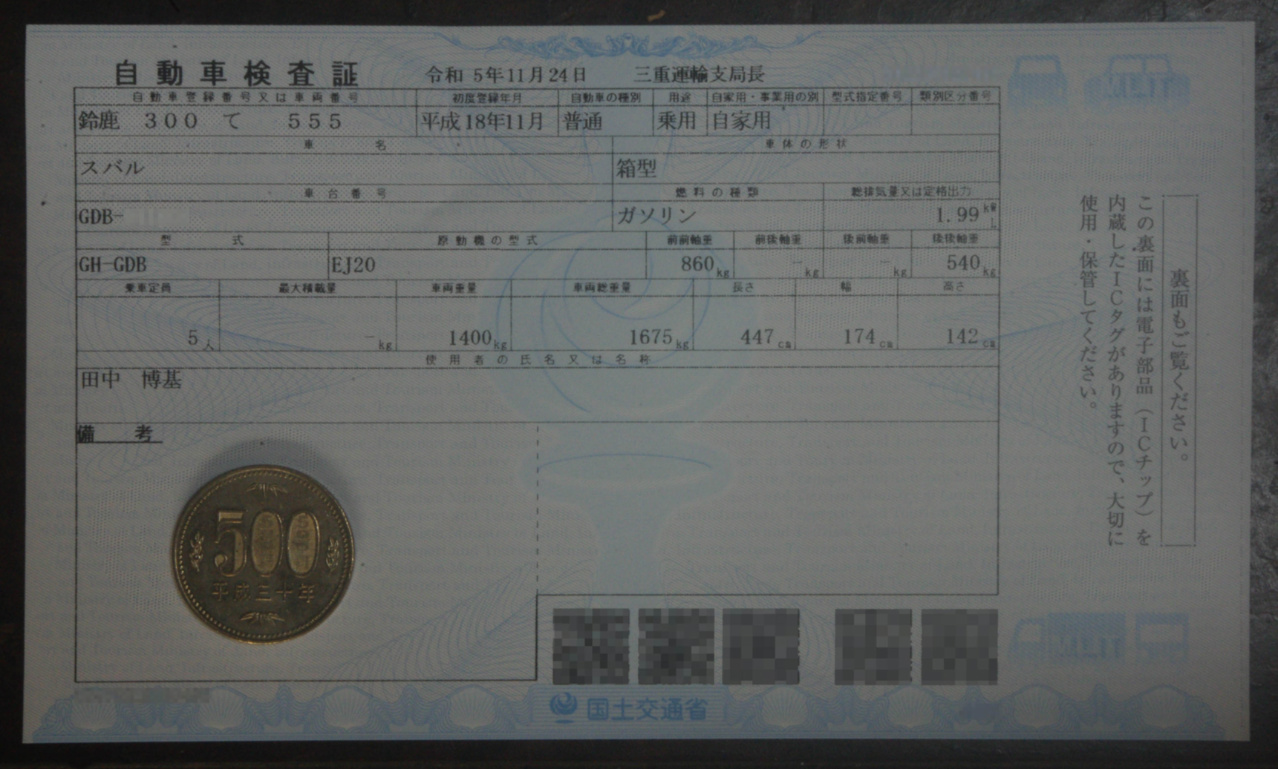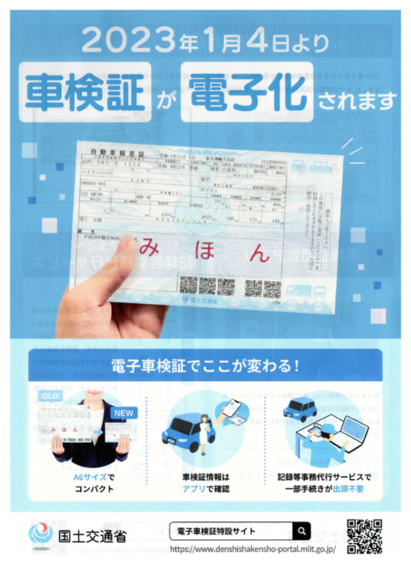 これによりますと、車検証は電子化されるとともにA4サイズからA6サイズへと大幅に縮小されました。