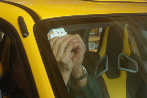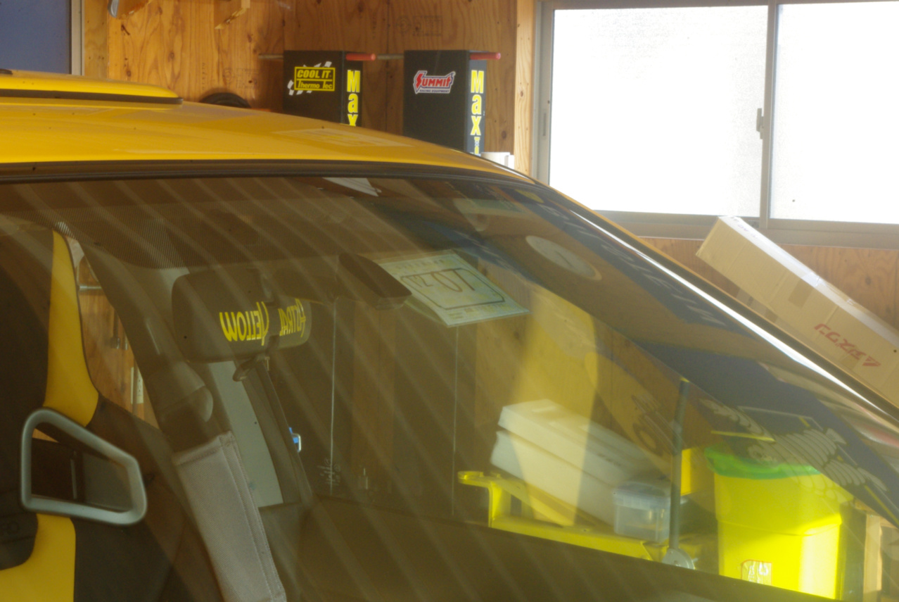 ウインドーの中央上に貼っていた保安基準適合標章を剥がして無事に作業完了