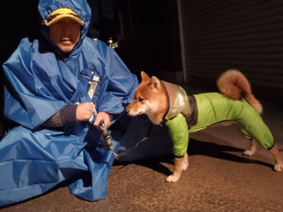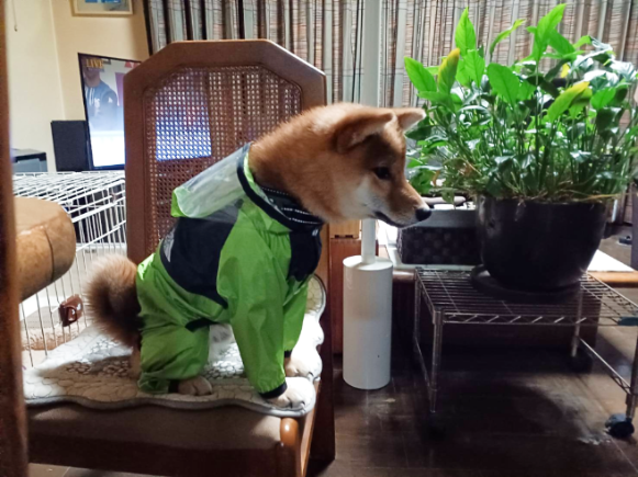 しかし雨の降る日はずーっとこうして着てきましたから、着脱にも慣れて飼い主もほとんど手間らしい手間は掛からないようになりました。