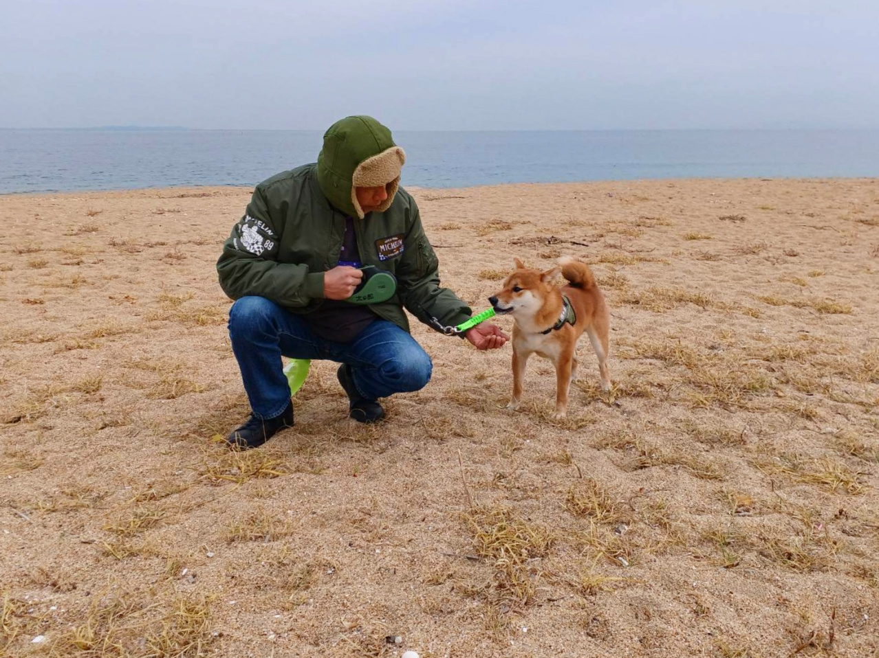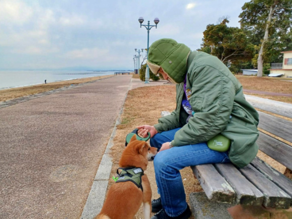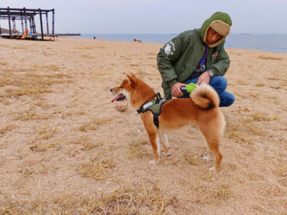 先代太郎が我が家に来て間もない頃に、散歩に慣れさせるためと称して、無理矢理この千代崎海岸まで歩かせたこともありました。