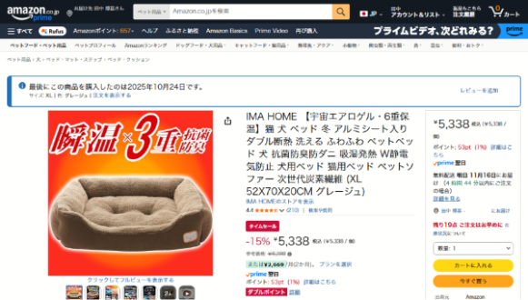 夏用に購入したクールベッドの作りとサイズが気に入ったので、同じメーカーで冬用の物を探しましたら、真にうってつけのこの商品が見つかりました。
