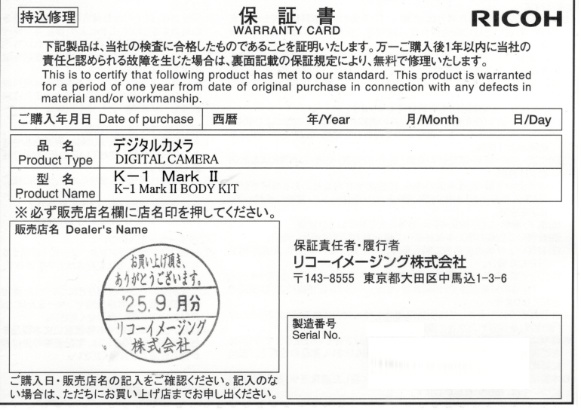 PENTAXのフラッグシップモデル K-1 Mark Ⅱです。