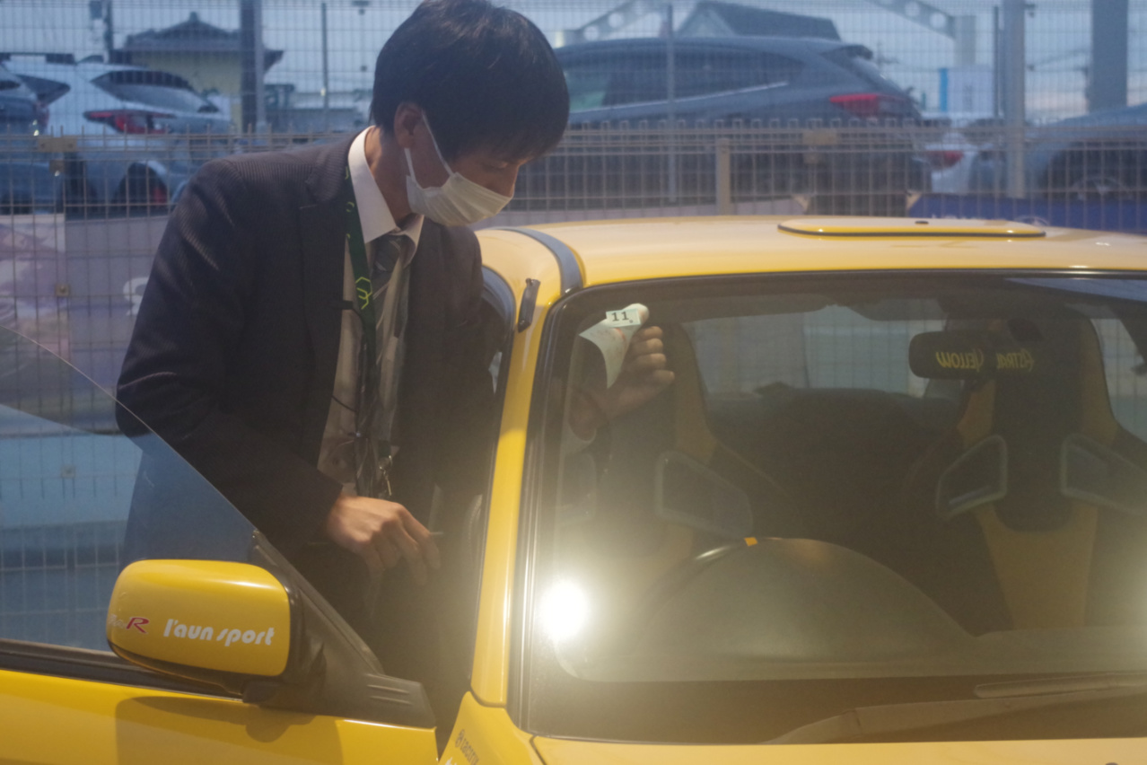 車検標章の貼り付けをお願いしたところ、こうして快く引き受けて下さいました。