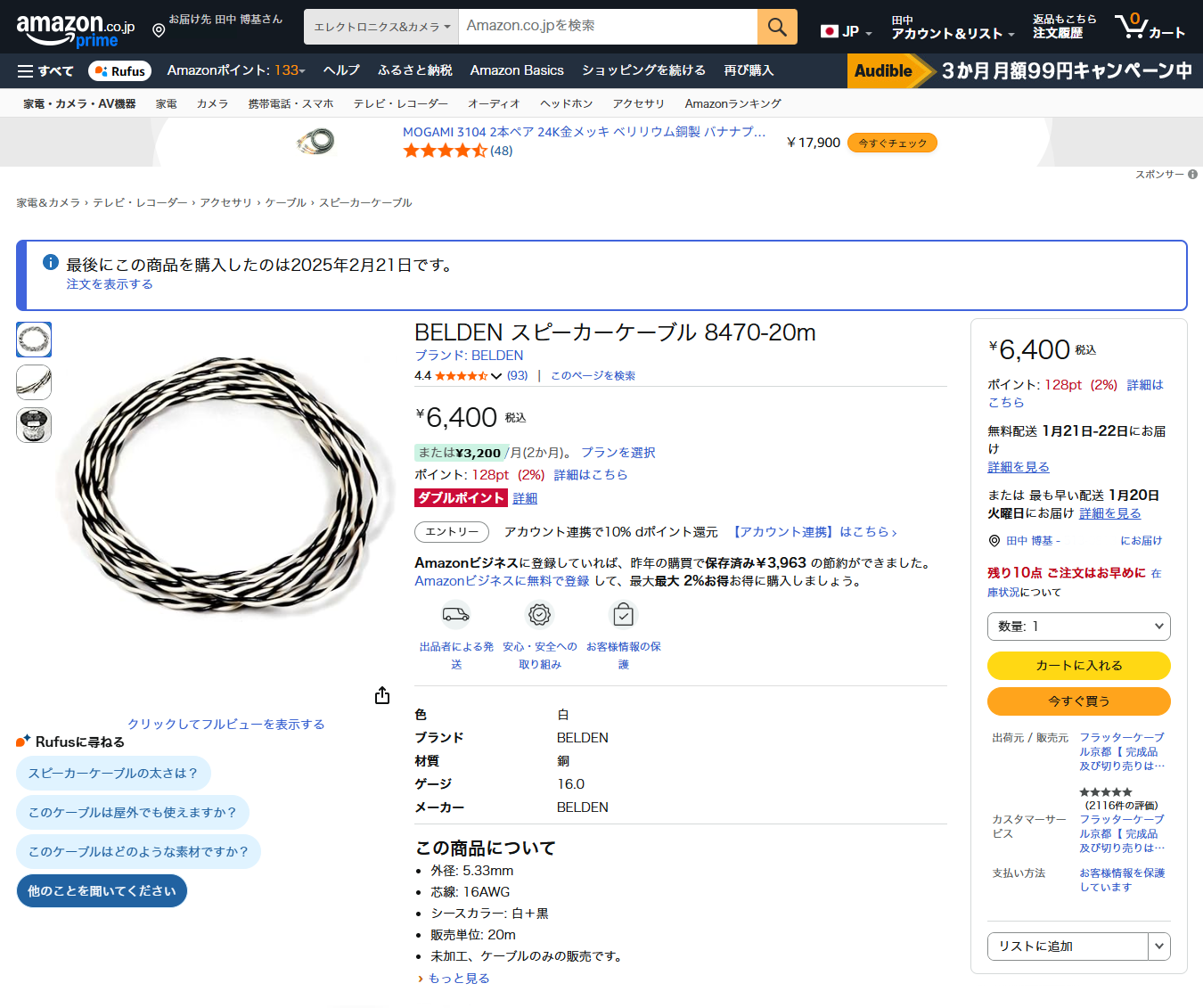 BELDEN 8470 をAmazonで購入した後、コレもAmazonで再々度購入しました。