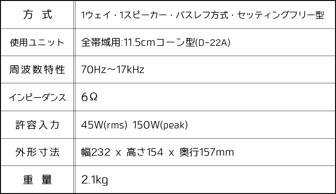 エンクロージャーはバスレフ方式を採用していますので比較的小さいユニットながら低音の再生は期待出来ます。