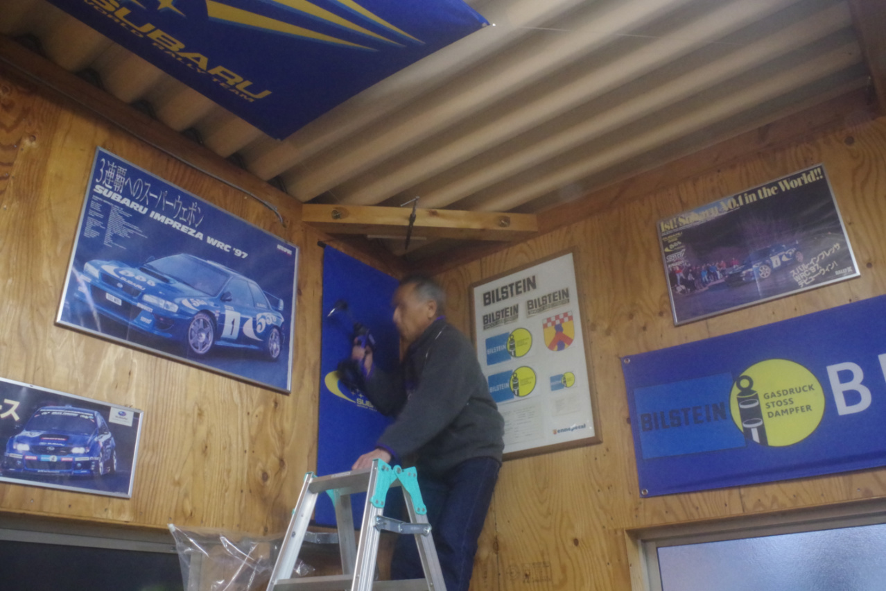 さてこれで左スピーカー本体がその後ろに見えるポスターパネルに接触していたために、ブラケットの固定位置を変更して設置し直して作業が完了しました。