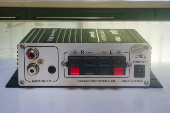 Lepai LP-2020A+ 後期武漢標準品パワーアンプを投入したために、2系統になったアンプ・スピーカーに対応するため、プレーヤー側の一つしか無い
