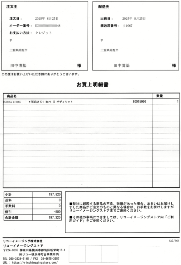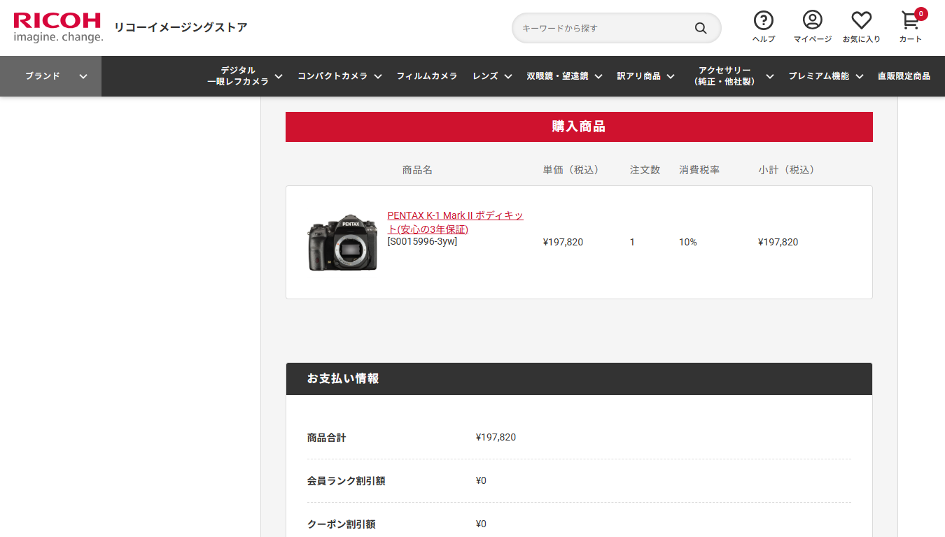 そしてこれも既に上に掲載しているSITE PAGEのスクショでご覧の通り、どうせ買うなら本家のネットショップ リコーイメージングストアで購入しようと決めました。