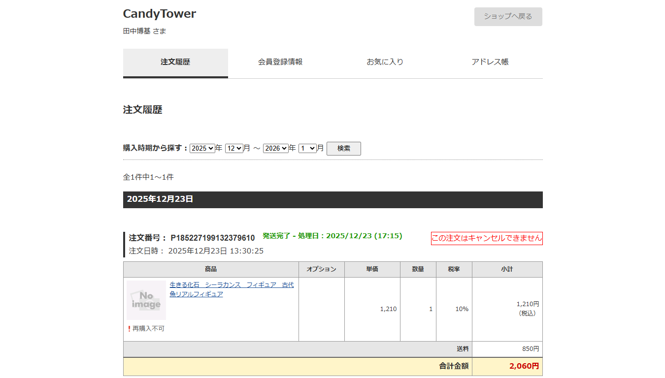 結局年末年始の期間を跨いだためか、国内の発送にもかかわらず到着までこんなに日数が掛かってしまいました。